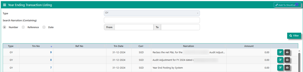 - For instance customer has 3 Year Ending Transaction Listing Entry. In this Case GY 7, GY 8 and GY 9. GY 7 is classified as Year End Posting while GY 8 and GY 9 are classified as Year- End Audit Adjustment.