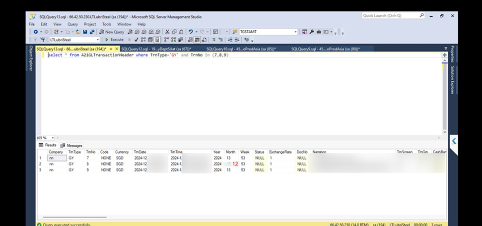 - Meanwhile, if the transaction only have 1 of the 2 accounts, P&L or Retained Earnings, then the Month = 12 for backend data (A21GLTransactionHeader) as shown in the image above.