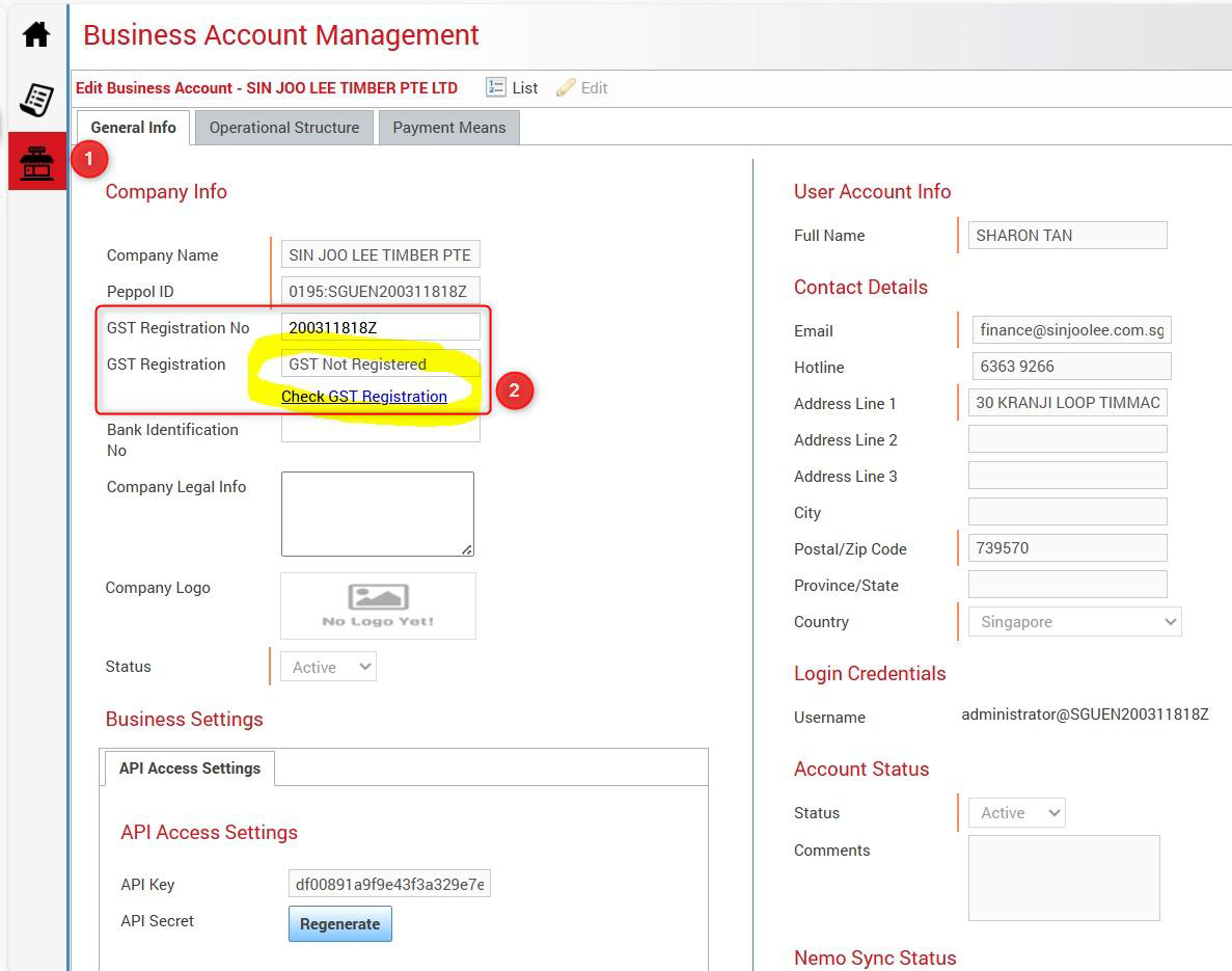 After Login, go ‘Business Account Management’ make sure GST No is correct and click ‘Check GST Registration’ to make sure the status updated to GST Registered.