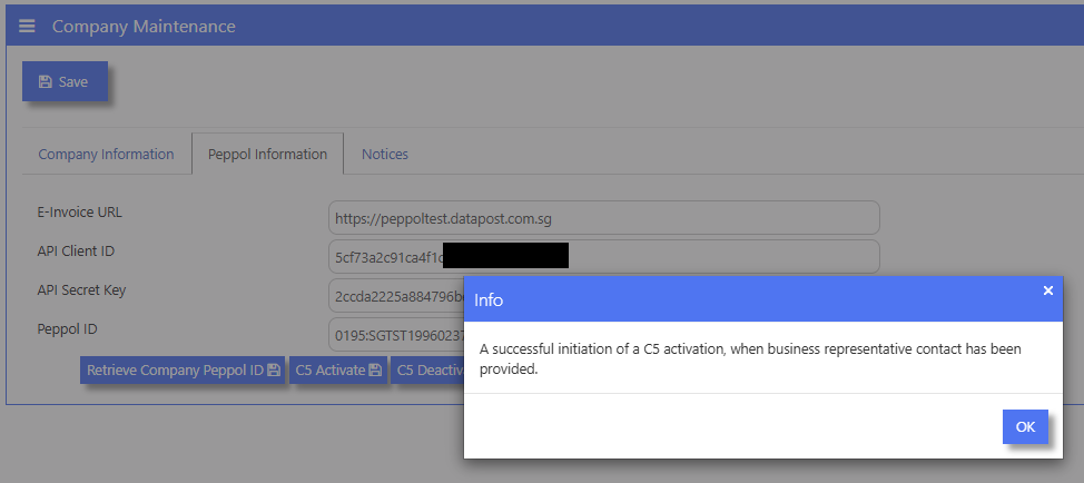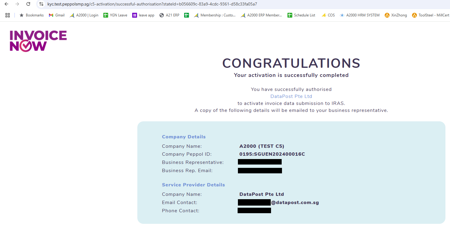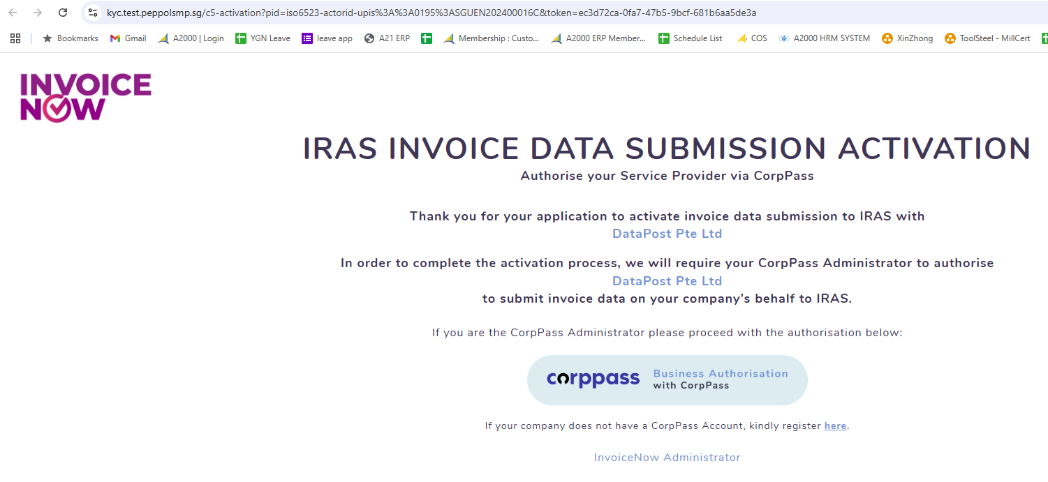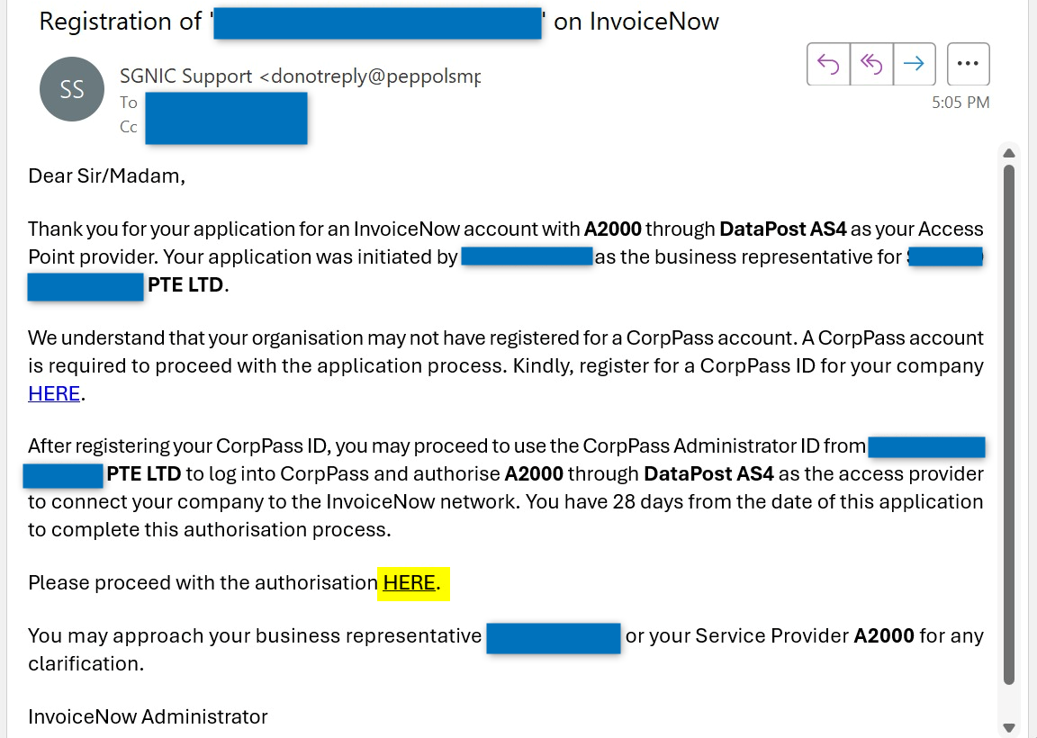Registered Company will also receive this email to ACTIVATE the PEPPOL ID with their authorized SingPASS