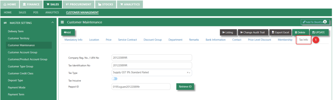 6. GET Customer Peppol ID under “Customer Maintenance”