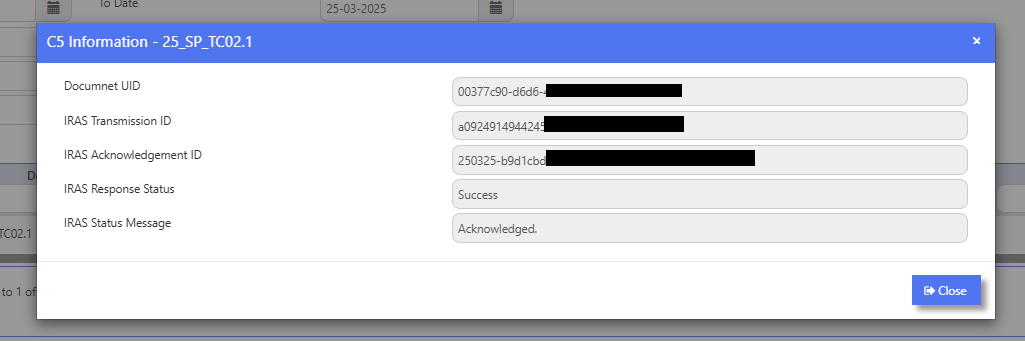 If C5 is already activated, the system will display the message: "C5 activation already exists.