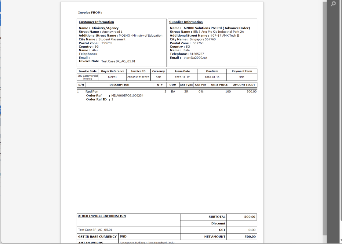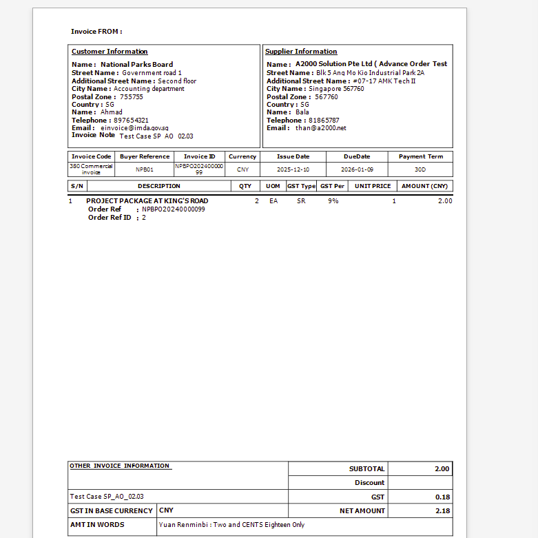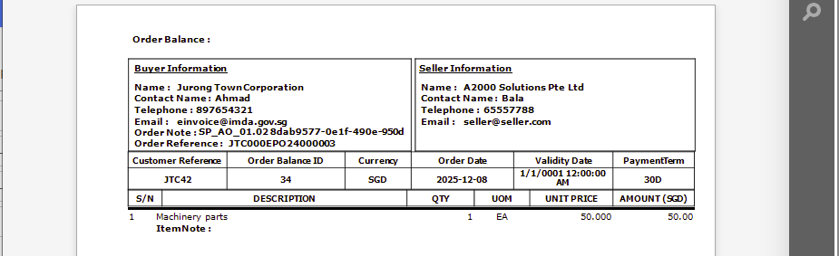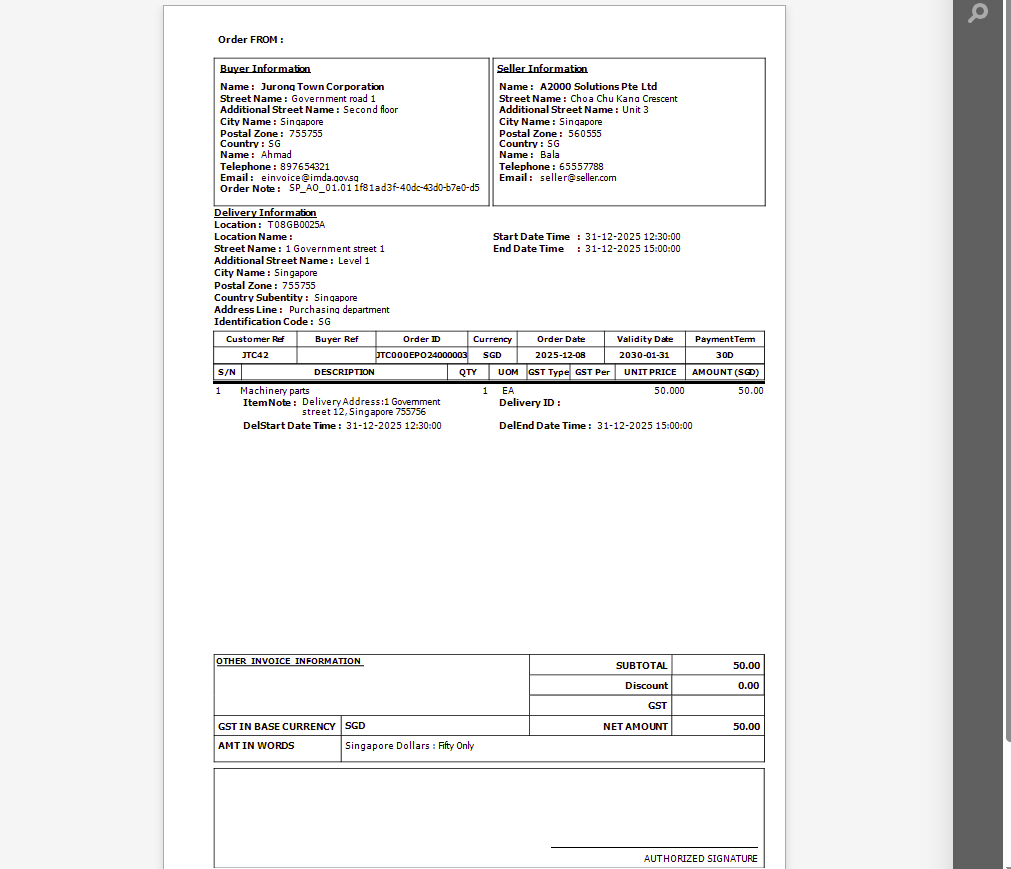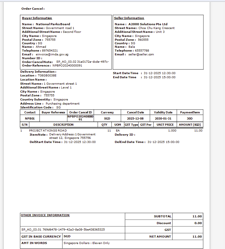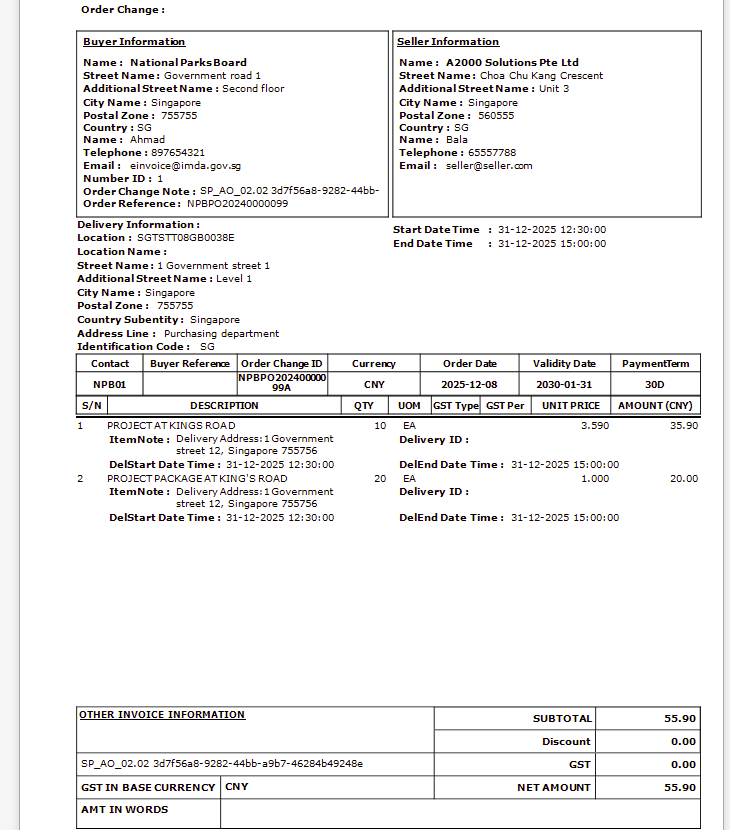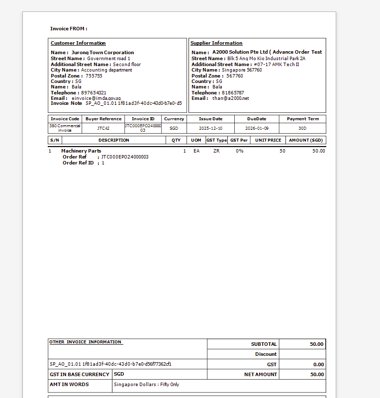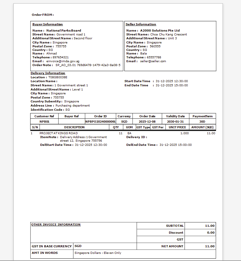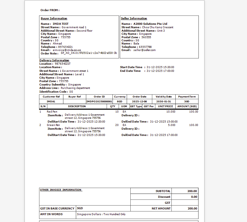 • A simplified Peppol invoice format designed for Singapore businesses.