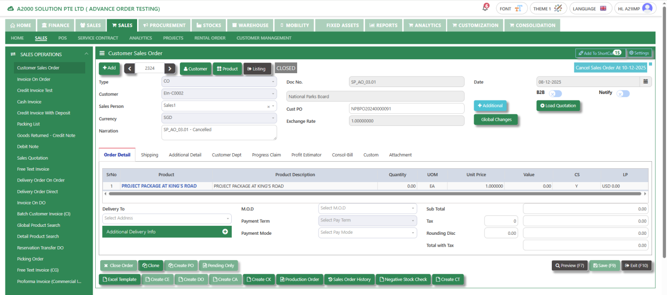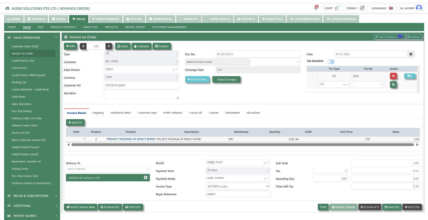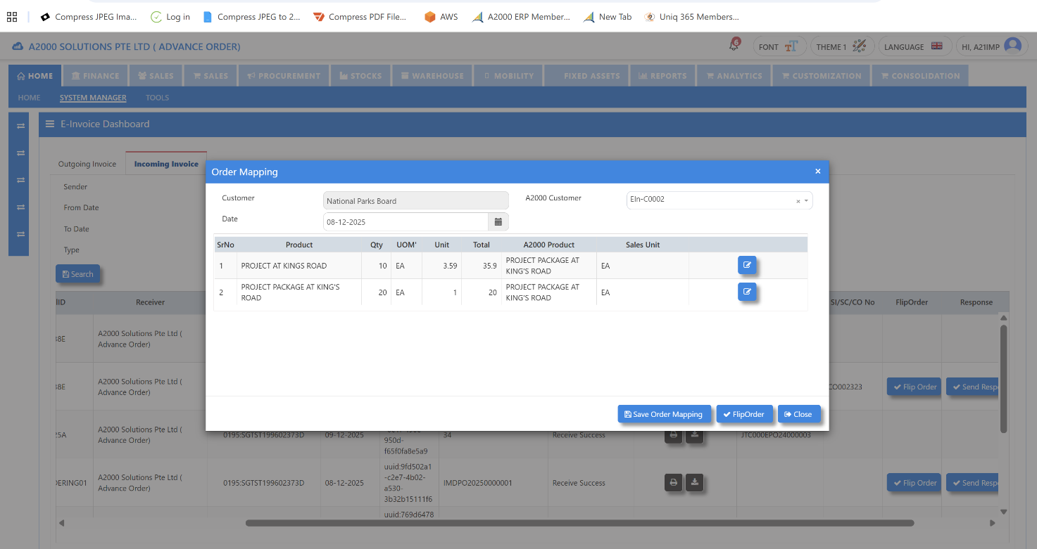 • (2) Flip Order Button – When customer send a Purchase Order to you, you can click Flip Order to generates both Sales Order [CO] and Invoice on Order [CE]. The generated Invoice [CE] will send to the customer at the same time.