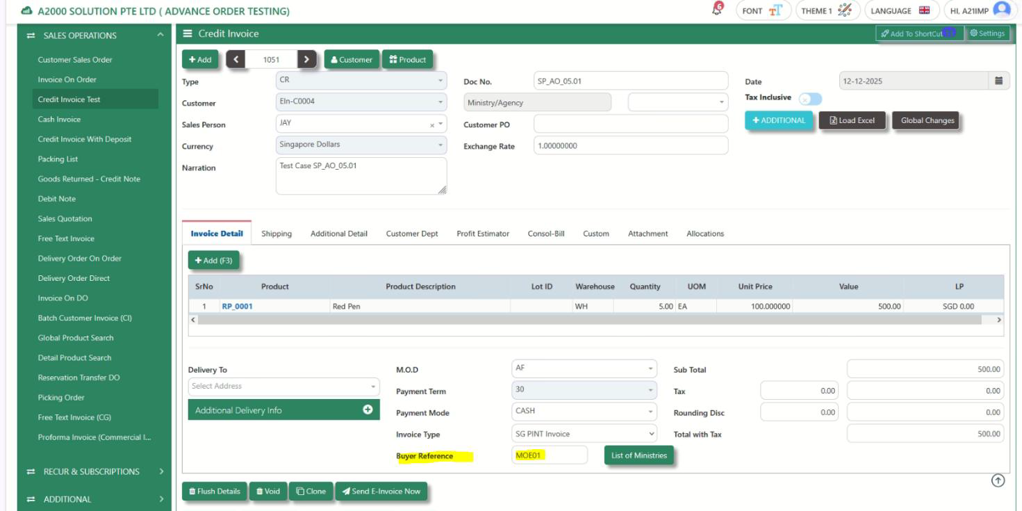 • (1) Processed Button – Process to Map Product and Create as Purchase Credit Invoice, after created, it will show the SI No. on the dashboard.